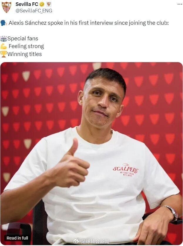 官方:塞维利亚宣布免签了36岁的桑切斯,双方签下了一份1年合同,智利球星将身披10号球衣。