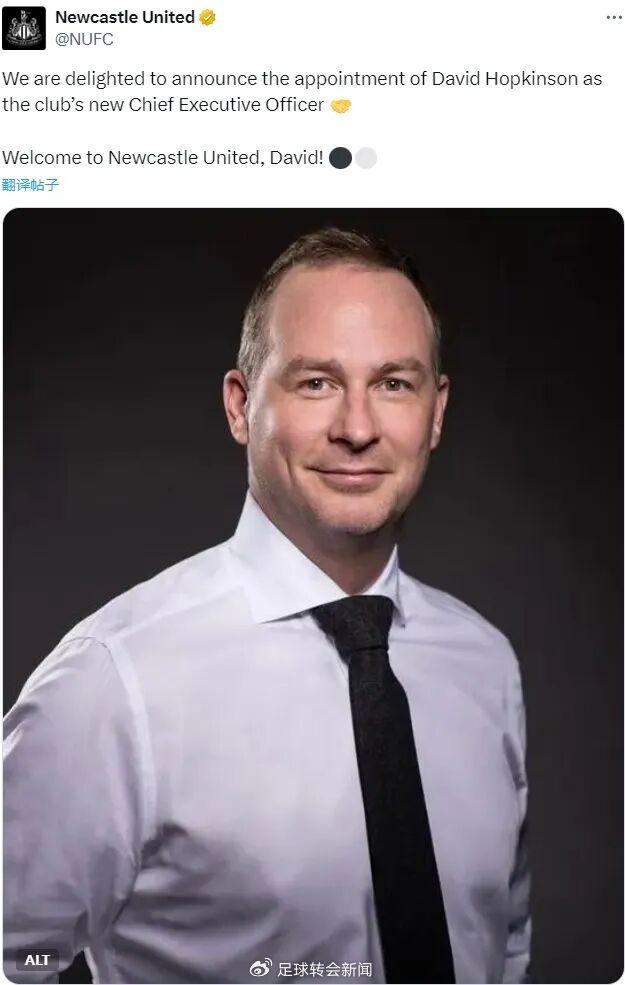 官方:纽卡斯尔宣布任命大卫-霍普金森为俱乐部CEO。